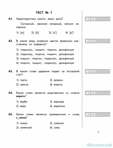 Русский язык. Итоговая аттестация за курс начальной школы 1-4 классы